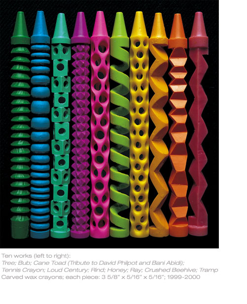 I think that these carved wax crayons are fascinating. I can’t even imagine why I like them so much! Check out the crayons and other art work by Pete Goldlust here.