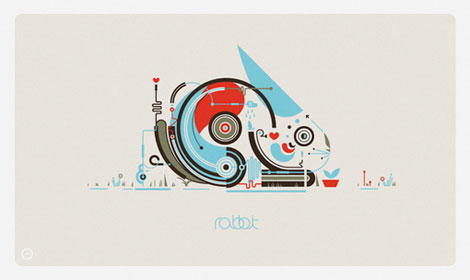 I found this rabbit print at Grain Edit. Artist Leandro Castelao lives in Buenos Aires. The Grain Editors describe this piece this way: “The lines look like wires creating some sort of robo bunny with a CD drive on steroids.” Prints of this piece and others are available here.